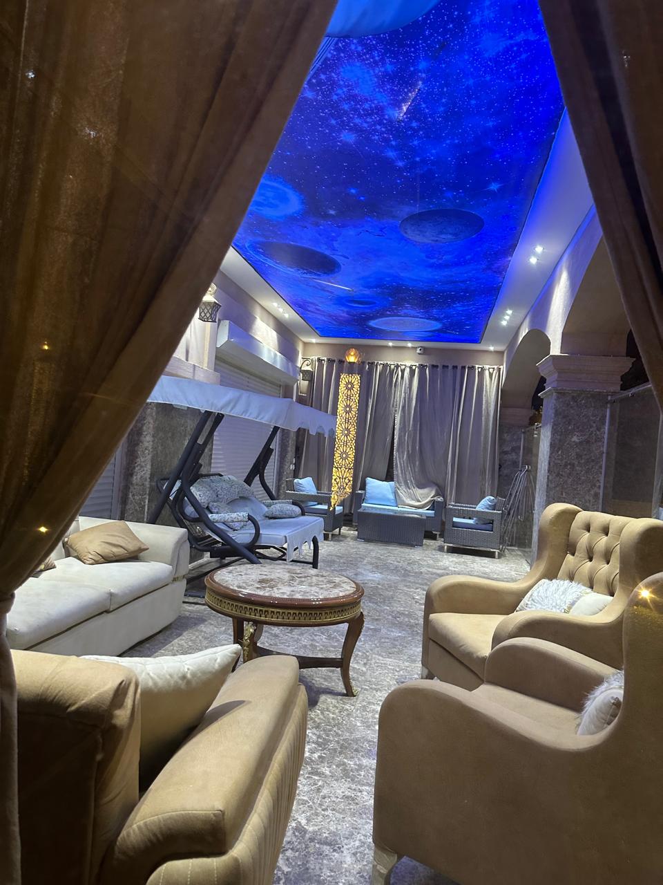 مساحه المباني ٨٠٠ عدد الغرف ٦ وعدد حمامات ٧ وعدد غرف خارجي ٢ وعدد ٢ مطبخ